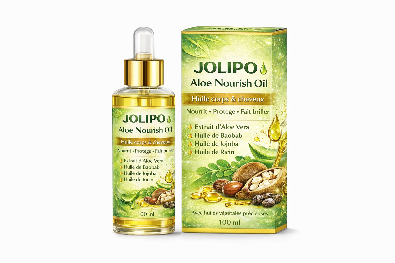 Sublimez votre beauté naturelle avec JOLIPO Aloe Nourish Oil, une huile précieuse conçue pour nourrir, protéger et révéler l’éclat de votre peau et de vos cheveux.